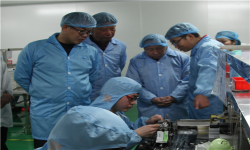 座谈会前,李振华等人在公司相关领导的陪同下深入参观了公司产品研发和生产流程,了解企业的生产经营情况并听取了相关负责人对公司的介绍。