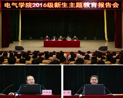 为了使16级新生能够更快的转变角色,更好的适应大学生活,引导学生树立远大目标,坚定理想信念,10月27日晚, iqqtv 2016级新生主题教育报告会在小礼堂如期举办。 iqqtv 党政领导康全玉、王福忠、王瑞、钱伟、王红旗,16级辅导员及全体16级新生参加了报告会。会议由王瑞主持。