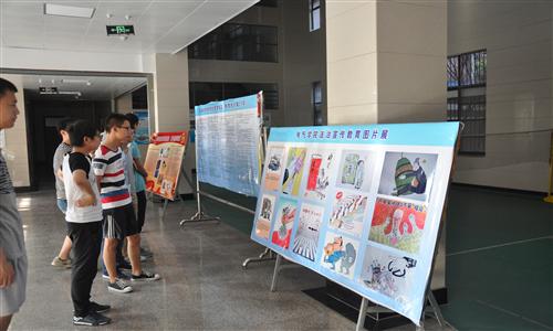 此次图片展主要包括我国“七五”普法规划主要内容、《普通高等学校学生管理规定》(新修订)和法治宣传教育图片三部分。“七五”普法主要包括“学习宣传宪法、弘扬宪法精神、树立宪法权威”“深入学习宣传以宪法为核心的中国特色社会主义法律体系”“深入学习宣传党内法规”“推进社会主义法治文化建设”“推进多层次多领域依法治理”等方面的内容;《普通高等学校学生管理规定》(新修订)主要是将新《规定》的最新变化进行宣传,使师生进一步明确权利义务;宣传教育图片通过漫画的形式向师生宣传法律知识,提升法律意识。