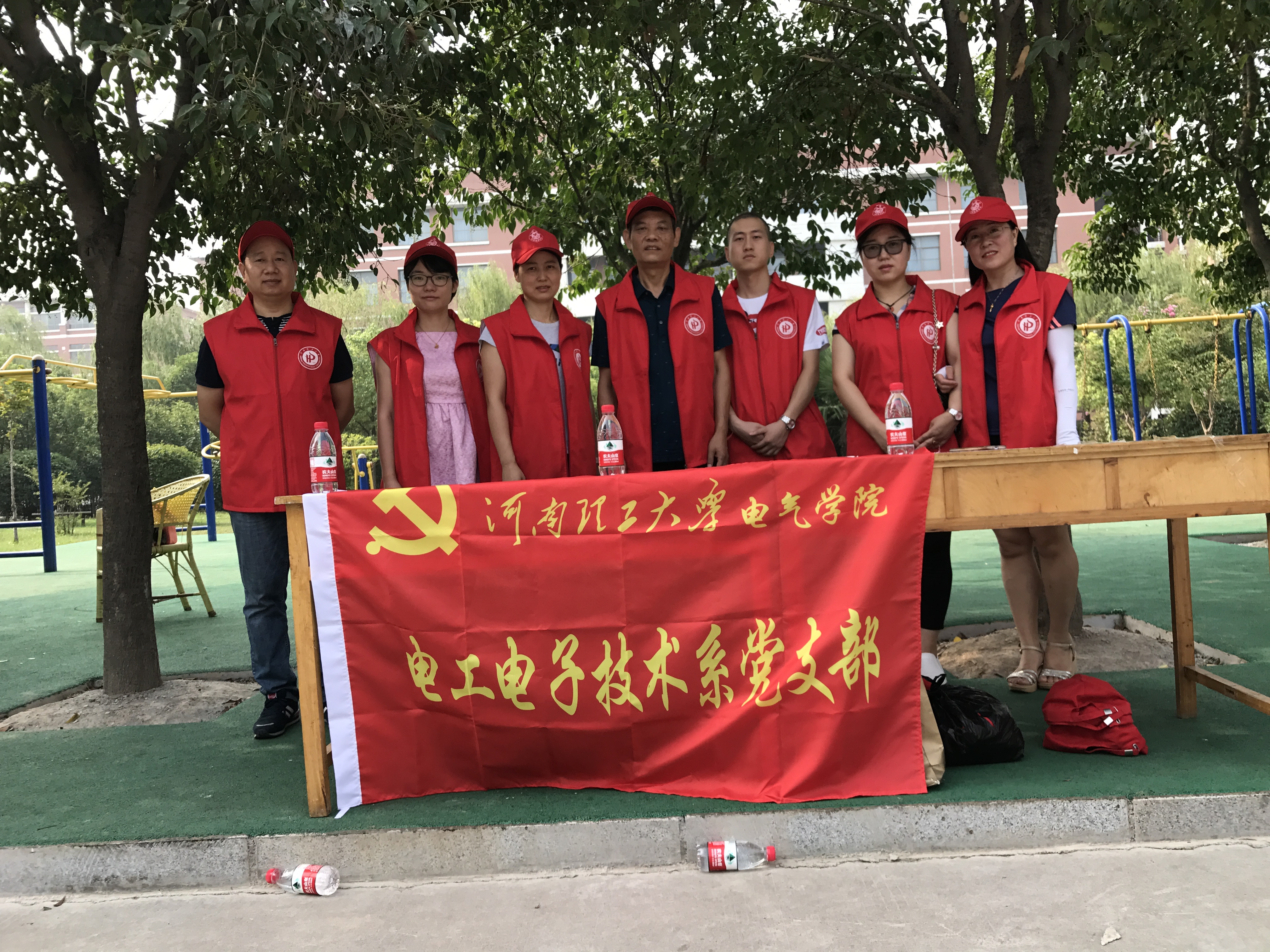 为培育和践行社会主义核心价值观,加强校园精神文明建设,扎实推进我校精神文明单位的创建工作,2017年8月12日上午, iqqtv 电工电子技术系党支部的党员同志们戴着小红帽,在 iqqtv 的滨河花园小区开展了“迎新风,创文明---志愿服务我先行”的主题党日活动。
