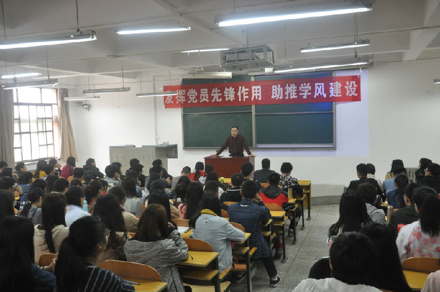 为深入学习贯彻党的十九大精神,落实立德树人根本任务,进一步实现以党建促学风的工作目标,充分发挥学生党员及入党积极分子的先锋模范作用、骨干带头作用、文明示范作用和学习表率作用,有效推动“学风建设提升年”工作。4月24日下午, iqqtv在电气楼301教室召开“党员模范看行动 学风建设我先行”活动动员大会。 iqqtv 党委书记康全玉,党委副书记王瑞,全体辅导员和200余名学生党员参加了动员会。