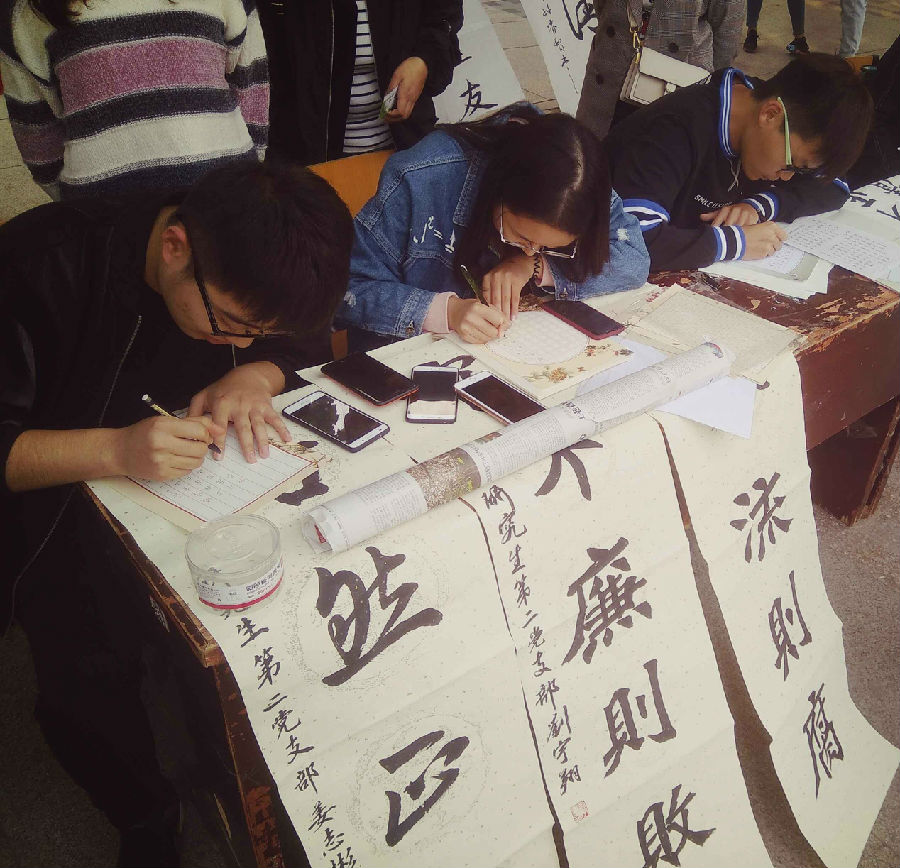 活动现场,众多师生、离退休教职工书画爱好者前往春秋大道观展鉴赏,给予鼓励点评,并积极参与,现场书写作品,现场征集书法作品30多幅。作品以“一身正气,两袖清风、静以修身,俭以养德”等词句为中心,弘扬了廉政文化与中国传统书法同时增强了纪律意识、廉洁意识,传递廉政文化正能量,营造出风清气正的校园文化氛围。