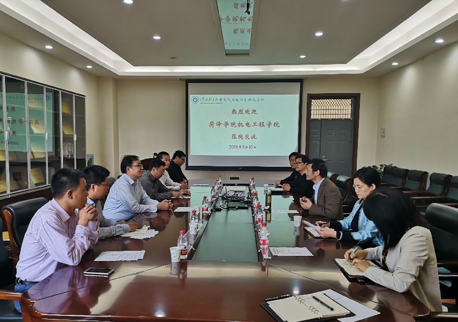 5月10日上午,菏泽 iqqtv 机电工程 iqqtv 院长李振武一行6人莅临 iqqtv交流。双方在215会议室举行座谈会, iqqtv副院长郑征,电力系、测仪系负责人等教师参加。座谈会由院长费树岷主持。
