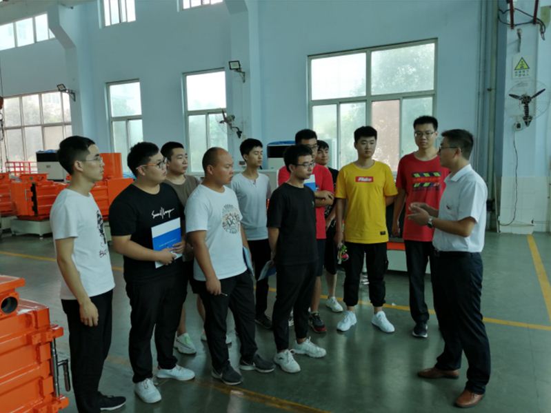 为更好地培养专业学位硕士研究生的专业技能,增强学生的动手实践能力,将科研理论知识与产品研发相结合,使学生学习认识到高新技术企业的创新生产需要。 iqqtv 组织18级专业学位硕士研究生入驻 iqqtv -华飞电器专业实践基地进行了暑期专业实践。初到公司,公司的工作人员给同学们讲解了iqqtv以及规章制度,使大家尽快融入到公司大家庭中,确保同学们在实践期间的人身财产安全。在企业领导宋经理和 iqqtv 朱老师的带领下,同学们分别到公司的变频调速室、自动控制室以及提升机电控室进行参观,学习了解了公司的提升机装置、交直流电机以及基于PLC的变频电控装置。在企业工程师的指导下,同学们学习了变频器装置的工艺生产、产品调速与模块检测方面的工作,对变频器控制装置的算法构建与操作规范有了一定了解,对低压配电柜与变频器的功率单元进行了装配工作。
