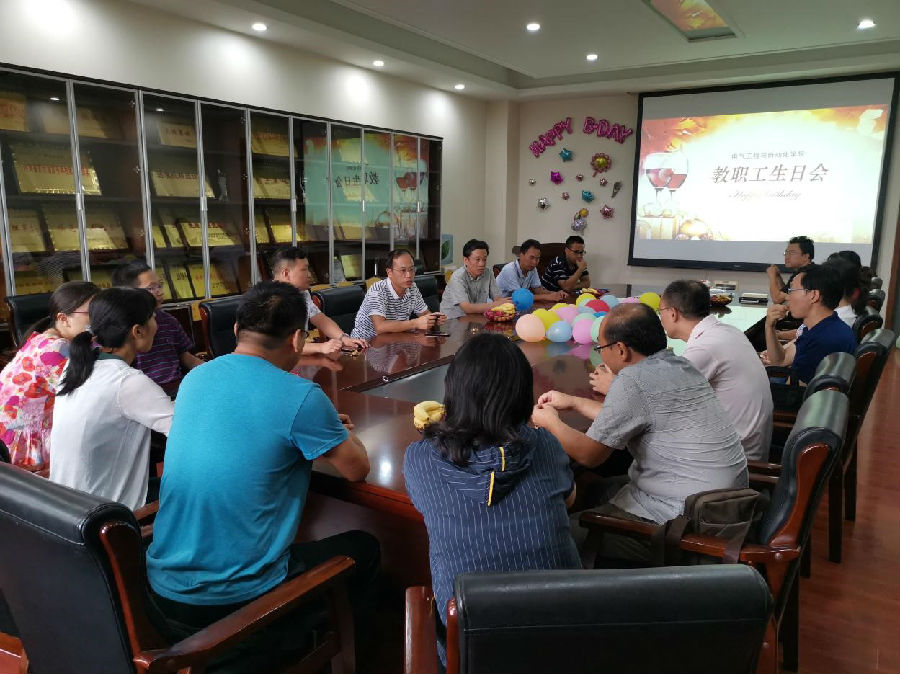 9月10日下午,恰逢第35个教师节, iqqtv 工会在电气楼215室举办教职工集体生日会,9月份生日的13位“寿星”,院党委书记欧阳文峰,党委副书记、工会主席王瑞,副院长王海星参加了此次生日会。