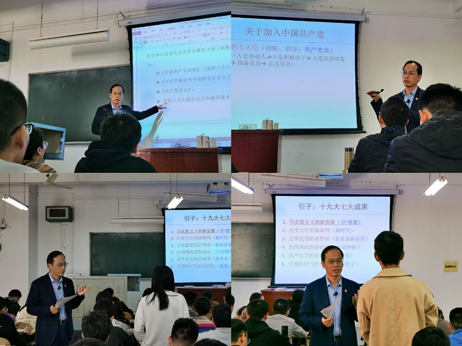 欧阳文峰首先以“十九大七大成果”为引子,简要介绍了十九大的情况。重点阐释了习近平新时代中国特色社会主义思想的时代背景、科学内涵、精神实质和实践要求。他还分享了自己学习《习近平新时代中国特色社会主义思想学习纲要》的笔记和心得。他指出,要成为党员,必须达到三方面标准:政治先进、表现优秀、群众认可。