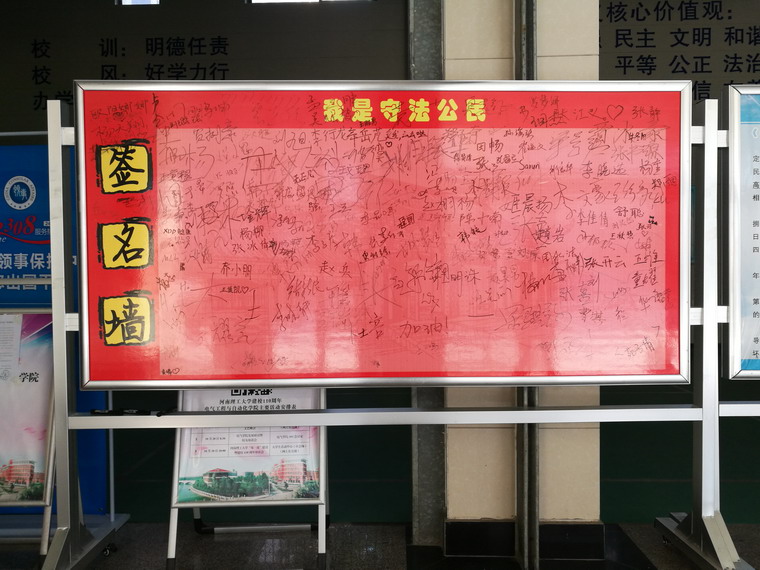 签名活动号召全院师生积极参加法制宣传月的活动,营造尊法学法守法用法的校园氛围。参加活动的师生在领会《中共 iqqtv 委员会关于开展法治宣传教育月活动的通知》的文件精神之后,纷纷在签名墙上签名。