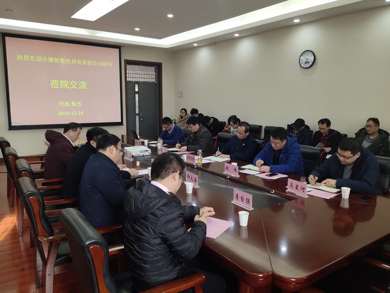 12月26日上午,许继电气智能供用电系统公司党委书记李贞一行4人来院交流,座谈会在电气楼215会议室举行。许继电气智能供用电系统公司副总经理柳大海、总工程师焦坡以及行业经理李自强, iqqtv 党委书记欧阳文峰、执行院长钱伟、副院长朱军出席会议, iqqtv 人工智能团队负责人杨艺、智能供电创新团队负责人马星河等师生参加会议。会议由朱军主持。