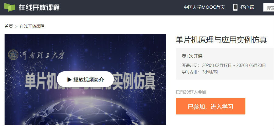 iqqtv微控制器课程教学团队负责建设的在线开放课程《单片机原理与应用实例仿真》于2020年2月11日正式在中国大学MOOC平台上线, 开课5周以来累计选修人数近3000人。目前课程运行效果良好,为疫情防控期间的单片机课程教学提供了丰富的学习资源。