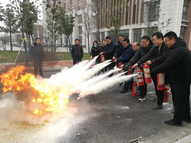 活动开始,保卫处孟科长认真讲解了做好扑救初期火灾的程序和要领,详细讲解了灭火器和家用灭火毯的正确使用方法。接着,保卫处人员组织老师们分别使用灭火器和灭火毯进行灭火演练,确保每位老师都能掌握灭火的要点。