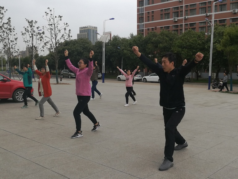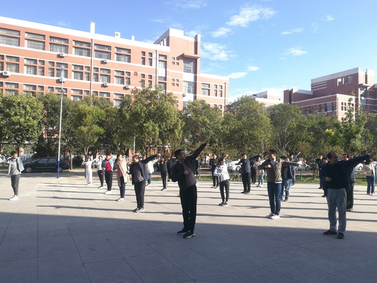 自10月6日开始,每周周二、周六为集体训练时间。老师们牺牲周末休息时间,克服各种困难积极参加。在成家锐老师的耐心讲解和带领下,老师们认真反复练习,对动作、姿势的一致性上力求尽善尽美,在运动中进一步树立“健康生活、快乐工作”的理念。